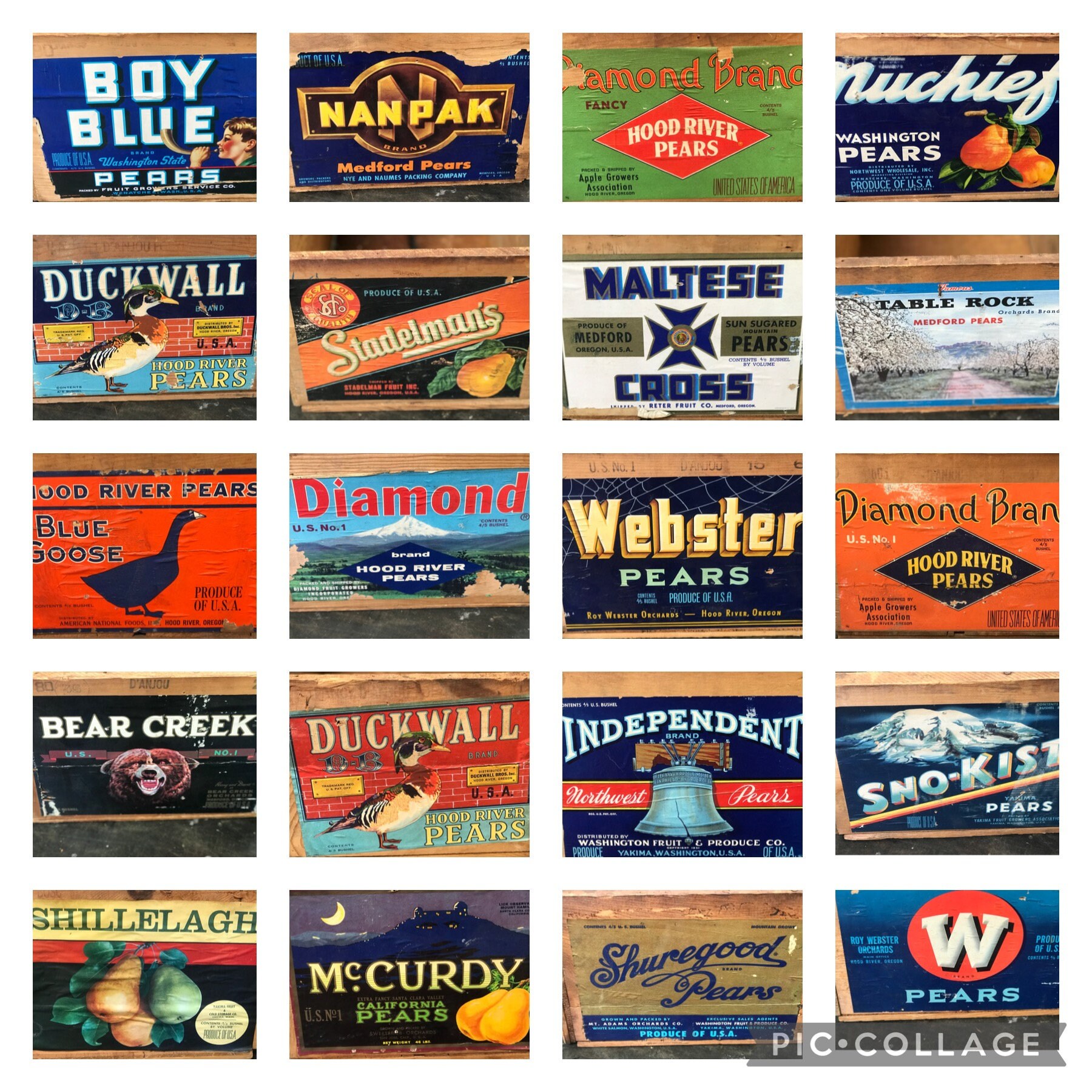 Wood Crates Vintage Pear Boxes With Colorful Advertising Etsy